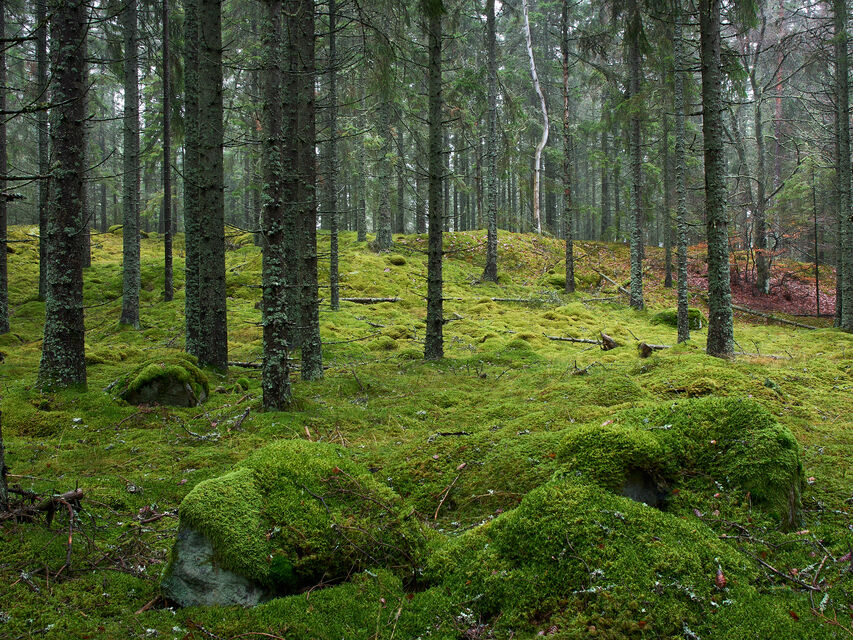 Trees, plants and some animals found in the forrest.